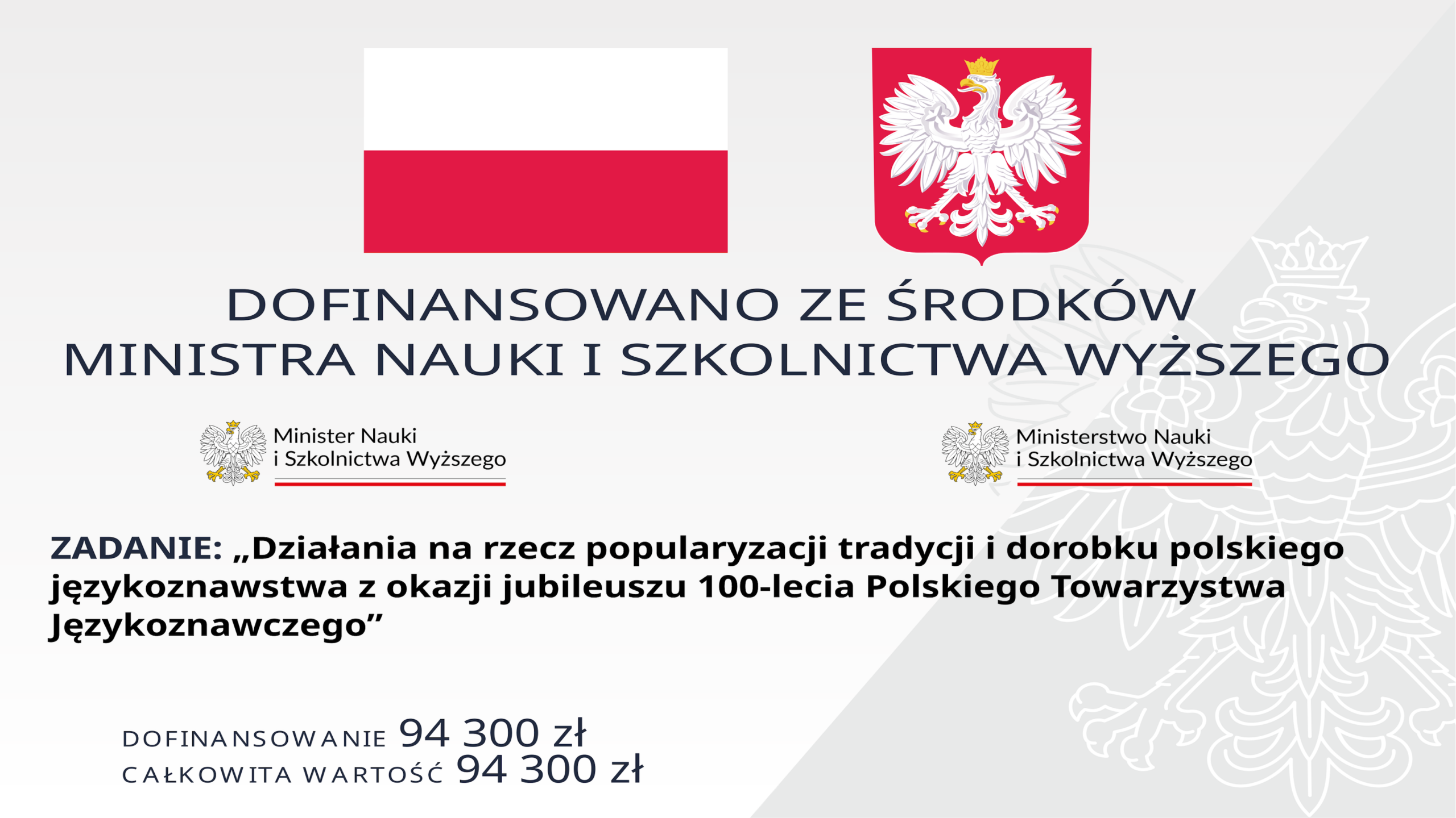 ZADANIE: „Działania na rzecz popularyzacji tradycji i dorobku polskiego językoznawstwa z okazji jubileuszu 100-lecia Polskiego Towarzystwa Językoznawczego”